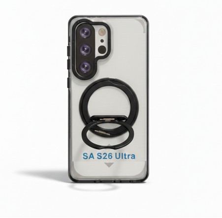 Its minimalist matte black finish delivers a premium, professional appearance while maintaining a slim profile that fits comfortably in your hand or pocket. The integrated rotating ring enhances grip stability, reduces the risk of drops, and doubles as a sturdy kickstand for convenient viewing in both portrait and landscape modes.