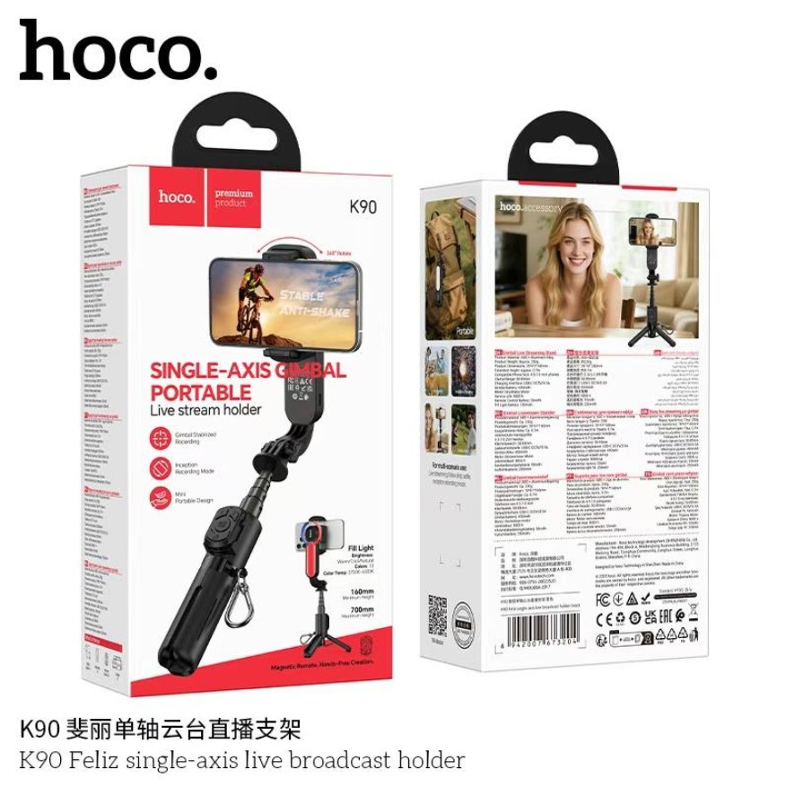 The HOCO K90 Feliz Single-Axis Live Broadcast Holder is designed for content creators seeking stability and smooth video output. Its single-axis stabilization helps reduce shake during recording, making it ideal for live streaming, vlogging, and social media content creation. Lightweight and easy to use, this holder offers a convenient solution for improving video quality without bulky equipment.