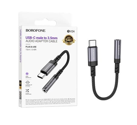 The Borofone BV24 is a compact and durable adapter designed to connect your USB Type-C devices to 3.5mm audio peripherals. Whether you’re using wired headphones, car aux inputs, or external speakers, this adapter ensures seamless audio transmission without the need for additional software or drivers.