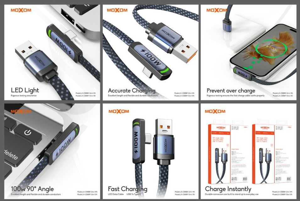 The MOXOM LX-CB889 USB to Type-C 1.5M Cable is designed for reliable and durable everyday charging and data transfer. With a 1.5-meter length, it offers extra reach for flexible device use at home, office, or car. Compatible with most USB-C devices, this cable supports stable power delivery and efficient data syncing.