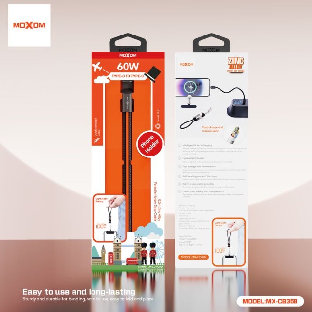 The MOXOM MX-CB358 3-in-1 Lanyard Cable combines convenience and versatility in one compact design. With multiple connectors on a single lanyard cable, it supports Type-C-to-Type-C charging and data transfer while remaining easy to carry and hard to lose. Perfect for travel, commuting, and everyday use.