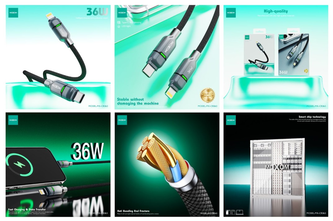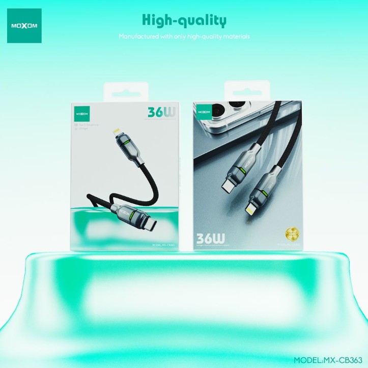 The MOXOM MX-CB363 delivers 36W fast charging for Apple devices with a Lightning port. Designed with Power Delivery support and reinforced build quality, this Type-C to Lightning cable efficiently powers iPhones and iPads while offering reliable data sync. Its smart design ensures long-lasting durability and daily convenience.